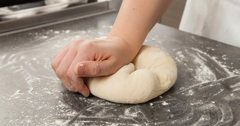 - Bước 2: Thêm từng chút nước ấm vào vào để nhồi bột sao cho bột mịn, dẻo không quá khô hay quá ướt.