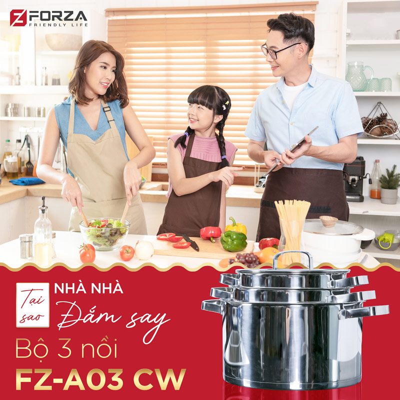 Bộ 3 nồi FZ-A03 CW là sản phẩm của thương hiệu nổi tiếng FORZA. Nồi có chất lượng cao cấp, không han gỉ, không bị phản ứng với các loại gia vị. Đặc biệt đáy nồi có tới 5 lớp chịu nhiệt, giữ nhiệt tốt và chống cháy cho món ngon của bạn.