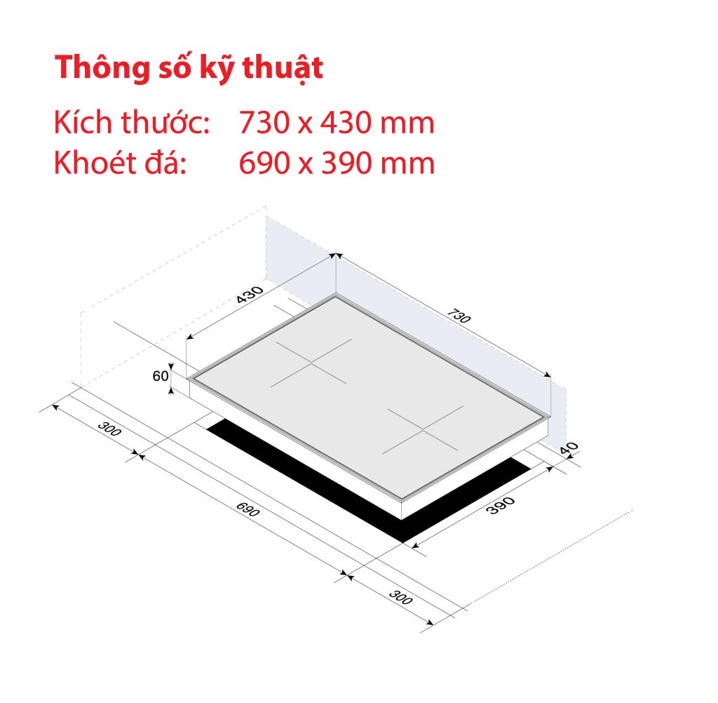Bếp đôi 2 từ FZ-68 ECS được thiết kế gồm 2 bếp đều có công suất là 2000 W booster 2300W, với kích thước 730x430mm giúp người dùng có thể thoải mái sử dụng. Thêm vào đó, kích thước khoét đá là 690×390 mm, được lắp âm nên vừa đảm bảo tính thẩm mỹ vừa mang phong cách hiện đại, tiện lợi cho ngôi nhà của bạn.
