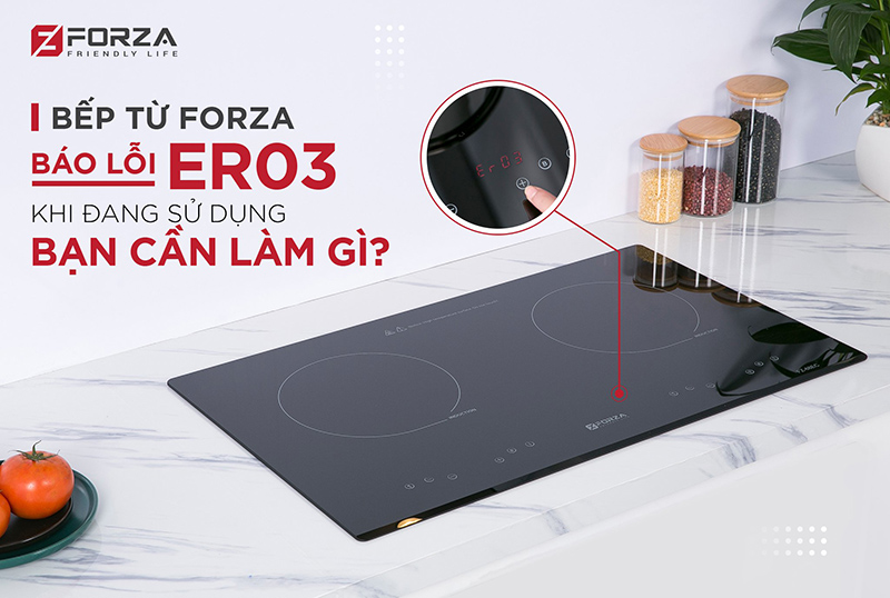 Khách hàng kiểm tra xem bàn phím có bị vật chắn hoặc bị tràn nước hay không. Vì báo lỗi ER03 là tính năng tự ngắt khi bàn phím bị tràn nước của bếp FORZA.