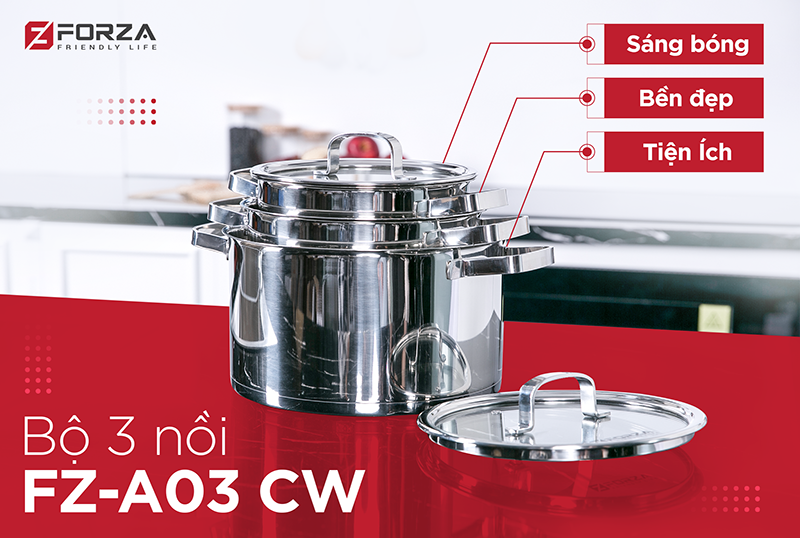 Để giúp các ông bố, bà mẹ dễ dàng hơn trong việc nấu nướng, làm chủ căn bếp, FORZA Việt Nam xin giới thiệu ưu điểm của bộ 3 nồi FZ-A03CW an toàn, hiện đại, chất lượng.
